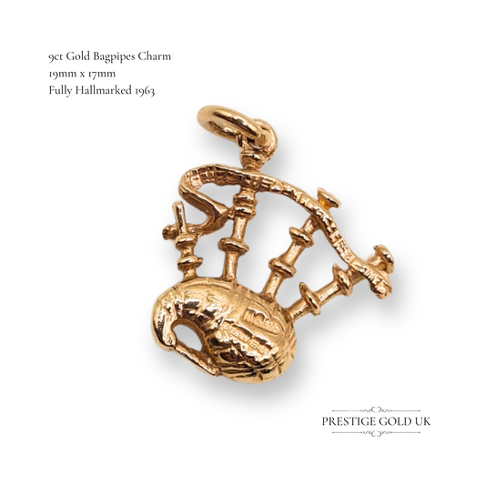 Small 9ct Gold Bagpipes Charm Hallmarked 1963 Scottish Souvenir
