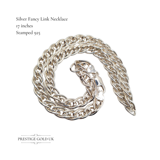 925 Short Silver Curb Chain Necklace 17" Stamped Vintage Wide Heavy