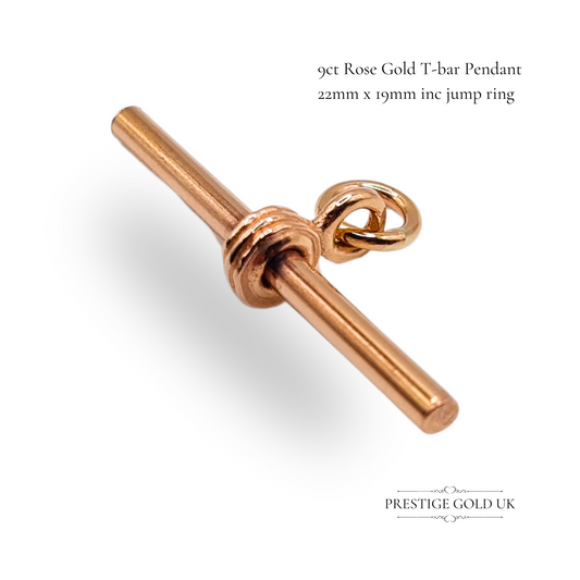 9ct Rose Gold T-Bar Pendant 22mm x 19mm With Jump Ring Vintage Solid Bar