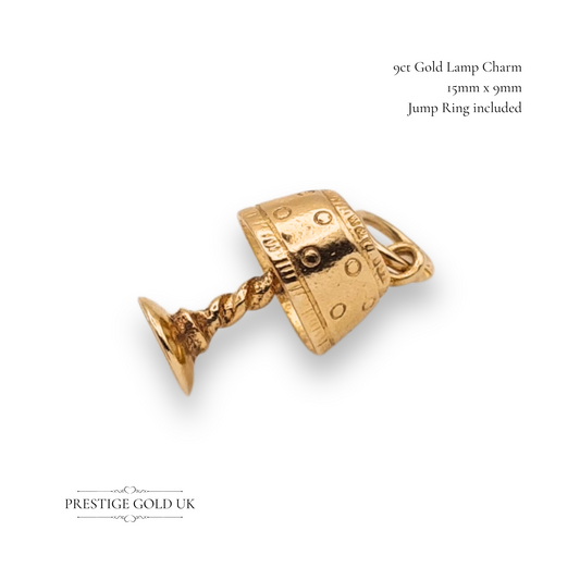 Small 9ct Gold Lamp Charm, Tiny Twisted Stem Solid Gold Miniature Lamp
