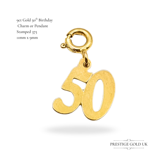 9ct Gold 50th Birthday Charm, Age 50 Milestone Birthday Present