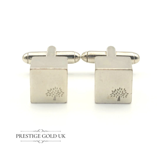 Solid Sterling Silver Cufflinks - Cube With Tree Design