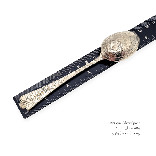 1889 Silver Engraved Teaspoon, Birmingham, Victorian Era