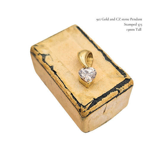 9ct Gold Heart CZ Pendant, Stamped 375, Dainty Love Charm