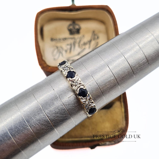 Vintage 9ct Gold Sapphire & Diamond Eternity Ring - Size UK P, US 7 3/4, Euro 56 1/2