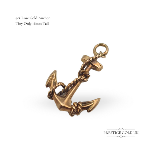 9ct Rose Gold Anchor Charm Pendant, Vintage Nautical Jewellery