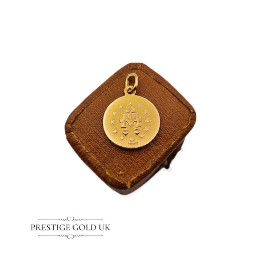 Vintage 18ct Gold Round Meraculas Medal / Virgin Mary Charm or Pendant