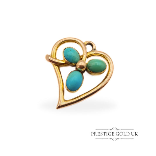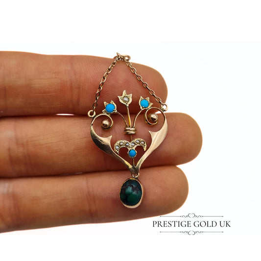 Antique 9ct Edwardian Small Turquoise and Seed Pearl Drop Pendant