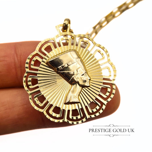 Gold Egyptian Queen Nefertiti Pendant on 30" Paper Chain Necklace