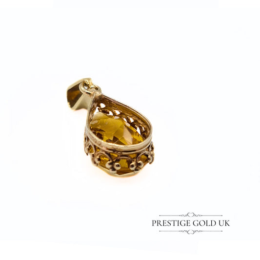 Vintage Pear Cut Citrine Pendant in 9ct Gold