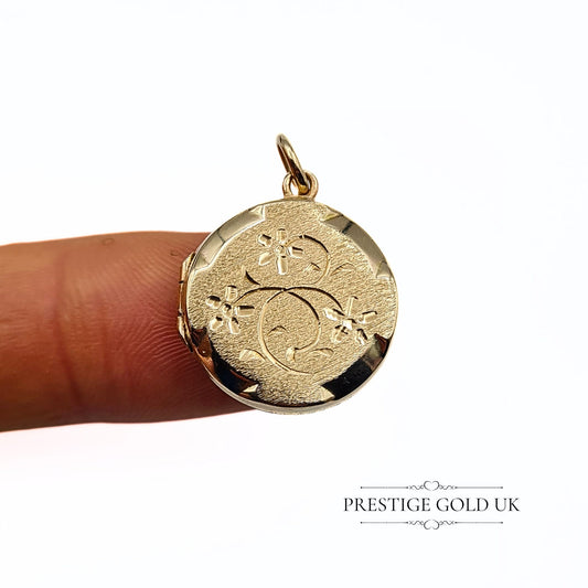 Vintage 9ct Gold Round Engraved (Geometric Design) Locket