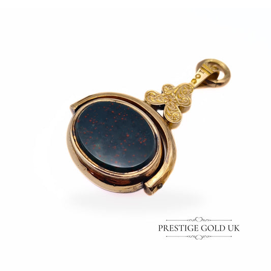 Antique 10ct Gold Spinning Fob with Bloodstone & Sardonyx