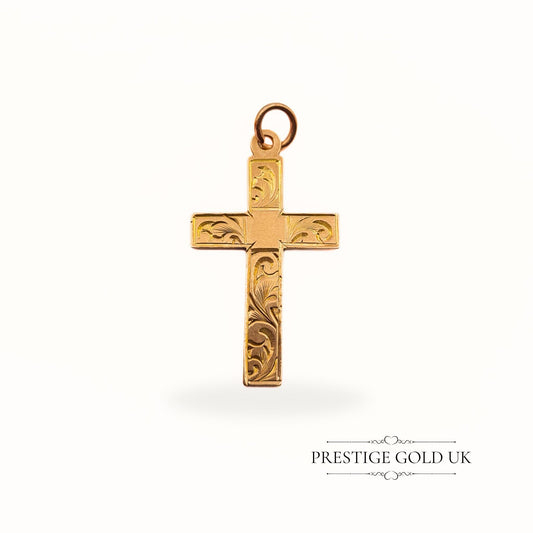 Vintage 9ct Gold Small Engraved Cross Pendant