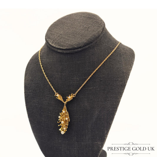 Unusual, Vintage 9ct Gold & Pearl Pendant & Chain