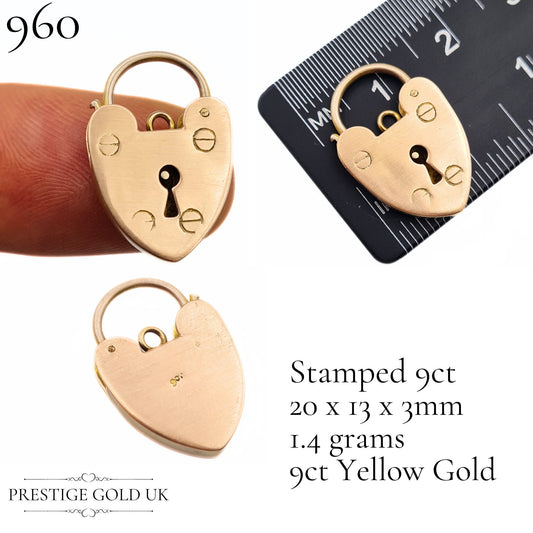 Vintage Small Gold Heart Padlock Pendants 9ct - Multiple Sizes