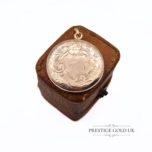 Antique Engraved 9ct Gold Tri Fold Photo Locket