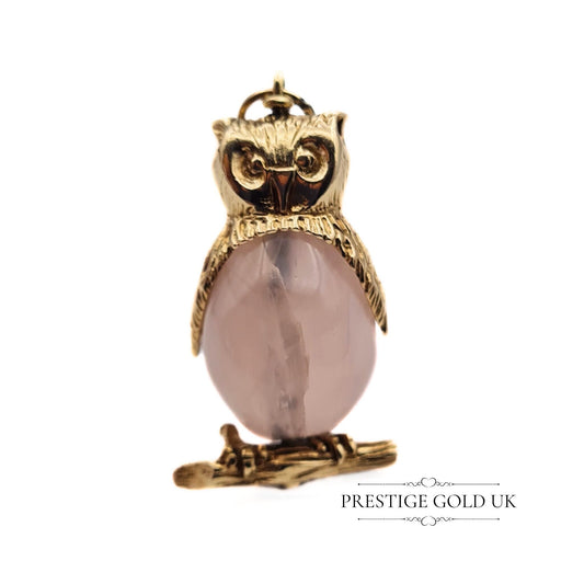 Vintage 9ct Gold Pink Quartz Owl Pendant