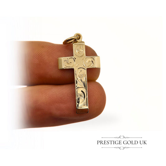 Vintage Engraved Solid 9ct Gold Cross Pendant
