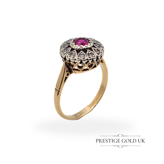Vintage 9ct Gold & Silver Spinel Faceted Ring - Size UK L, US 5 1/4, Euro 51.5