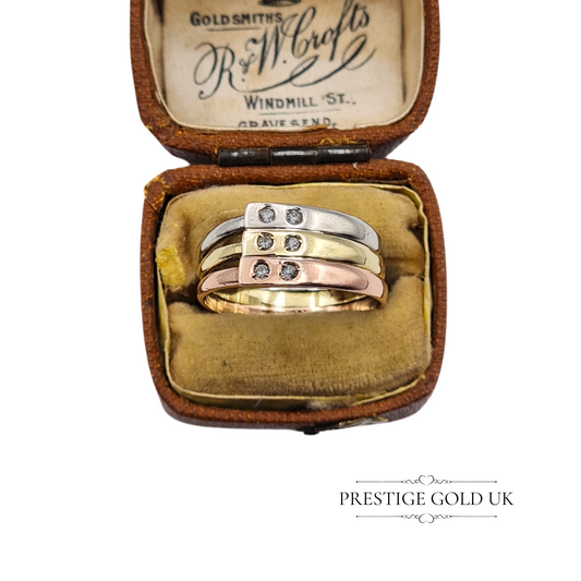 Vintage 14ct Tri-Tone Gold Triple Band Spinel Ring - UK N 1/2 US 7 Euro 54.5