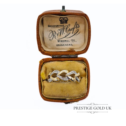 Vintage 9ct White & Yellow Gold & Diamond Interlocking Heart Ring - UK L ½, US 6