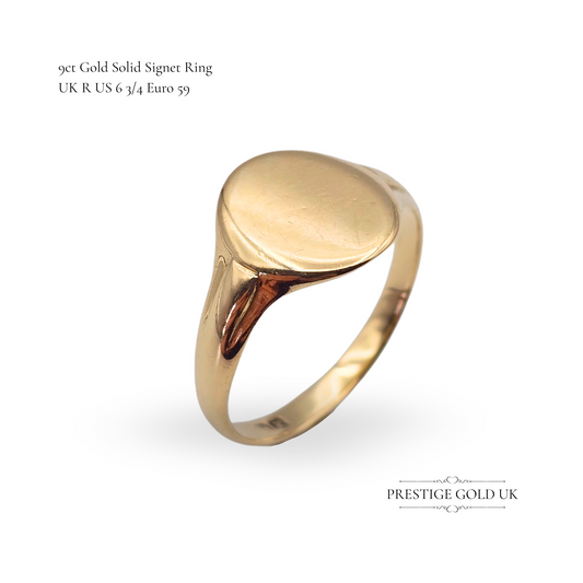 9ct Gold Oval Signet Ring, 949 Hallmark, Solid Gold, UK R US 6 3/4 Euro 59
