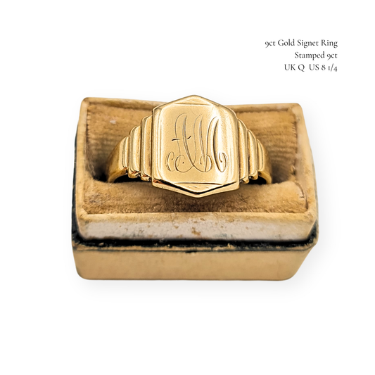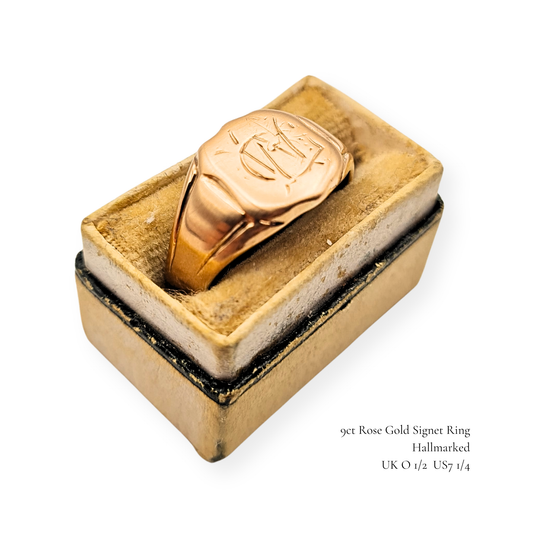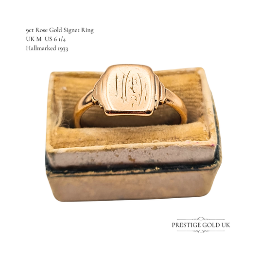 Dainy 9ct Rose Gold Signet Ring Square Monogram UK M US 6 1/4 Circa 1933