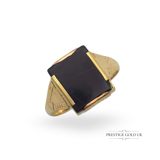 9ct Gold Onyx Signet Ring, Rectangular Face, UK V / US 10.5, Bold Gent’s Ring