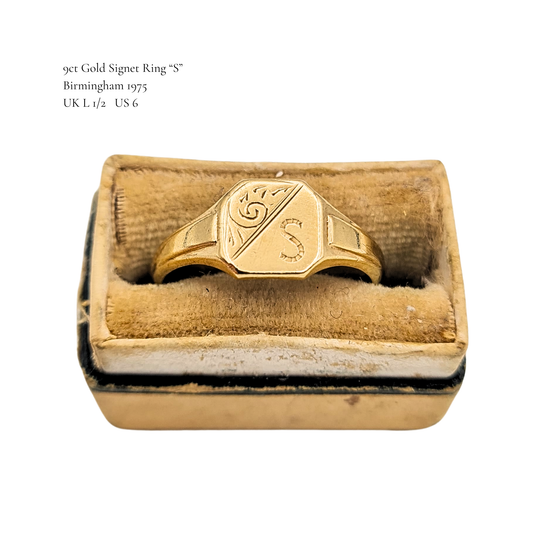 Small 9ct Gold Signet Ring S, Birmingham 1975, UK L 1/2 US 6
