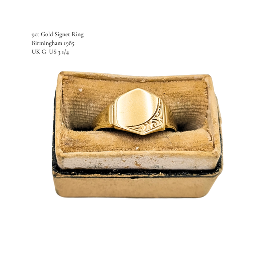 9ct Gold Dainty Pinky Signet Ring, Birmingham 1985, UK G US 3 1/4