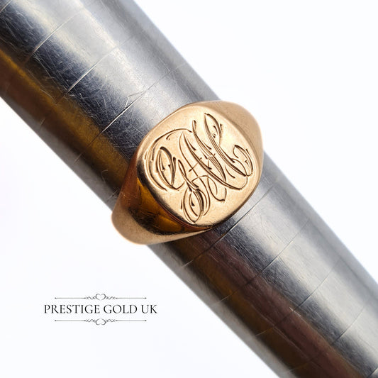 Large 9ct Gold Engraved Signet Ring UK Q US 8 1/4