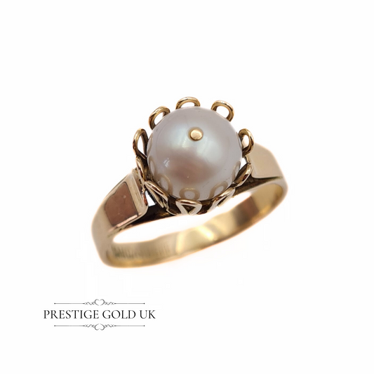 14ct Gold Cultured Pearl Solitaire Ring 14ct - Size UK R, US 8 1/2, Euro 58