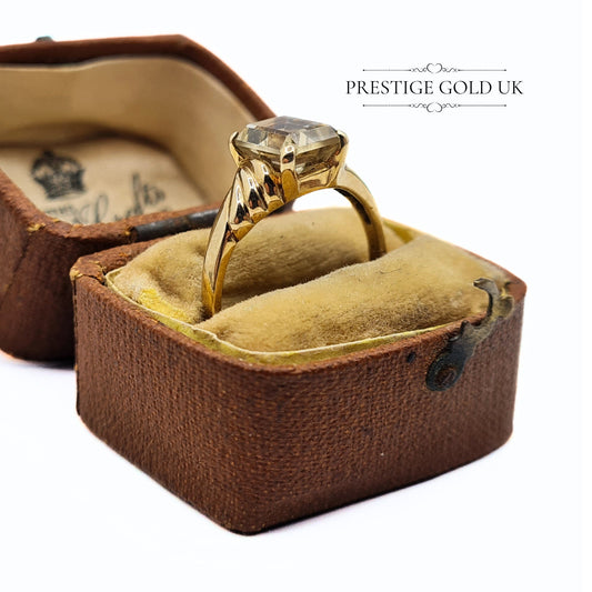 9ct Gold Baguette Cut Vintage Ring UK L US 5 3/4 Large Yellow Gemstone