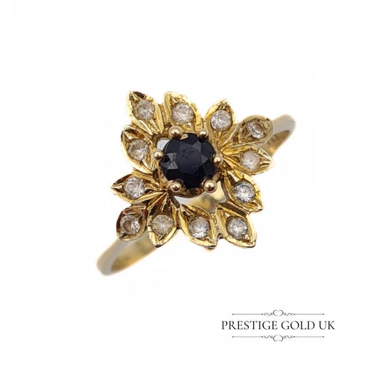 Fancy Vintage 14ct Gold & Sapphire Ring - Size UK N, US 6 3/4, Euro 53.5
