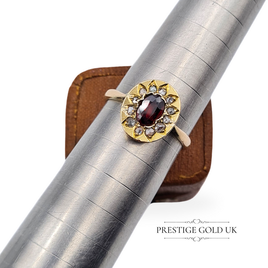 Antique 9ct Gold Garnet & Old Cut Diamond Ring - UK O 1/2 US 7 1/2 Euro 55.5