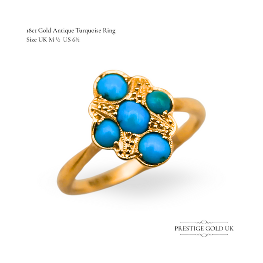 Antique 18ct Gold & Turquoise Ring - Size UK M 1/2, US 6 1/5