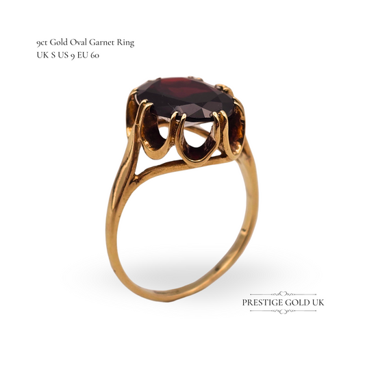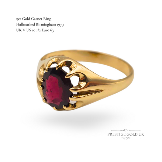 9ct Gold Garnet Solitaire Ring, 1979 Oval Claw-set Signet UK V US 10 1/2