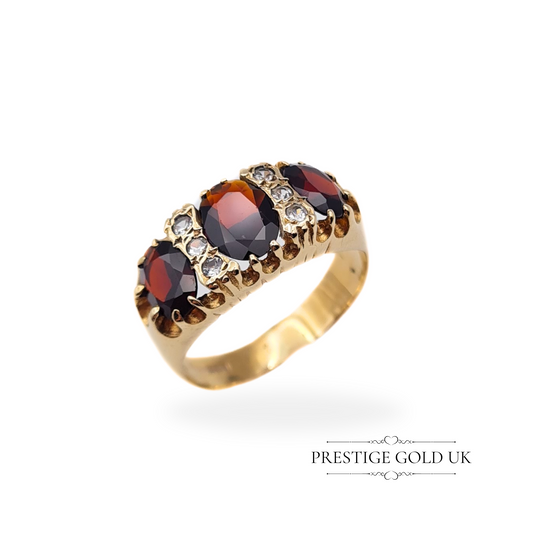 Vintage 9ct Gold Garnet & Cubic Zirconia Ring - UK Size O, US 7 1/2, Euro 55