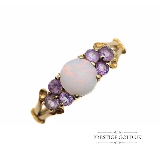 Vintage 9ct Gold Amethyst & Opal Ring - Size UK N 1/2, US 7, Euro 55