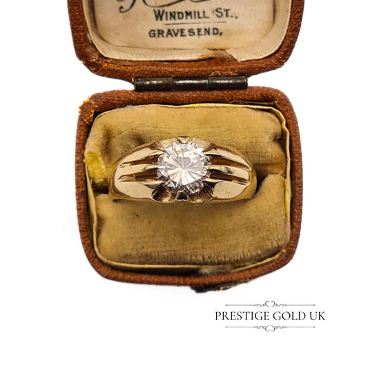 Large Vintage 9ct Gold CZ Solitaire Signet Style Ring - Size UK Q, US 8, Euro 57