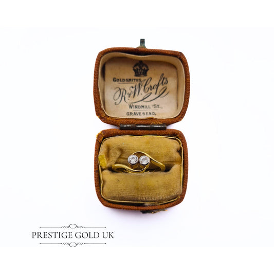18ct Gold Diamond Cross Over Ring - Size UK i, US 4 1/4, Euro 47.5
