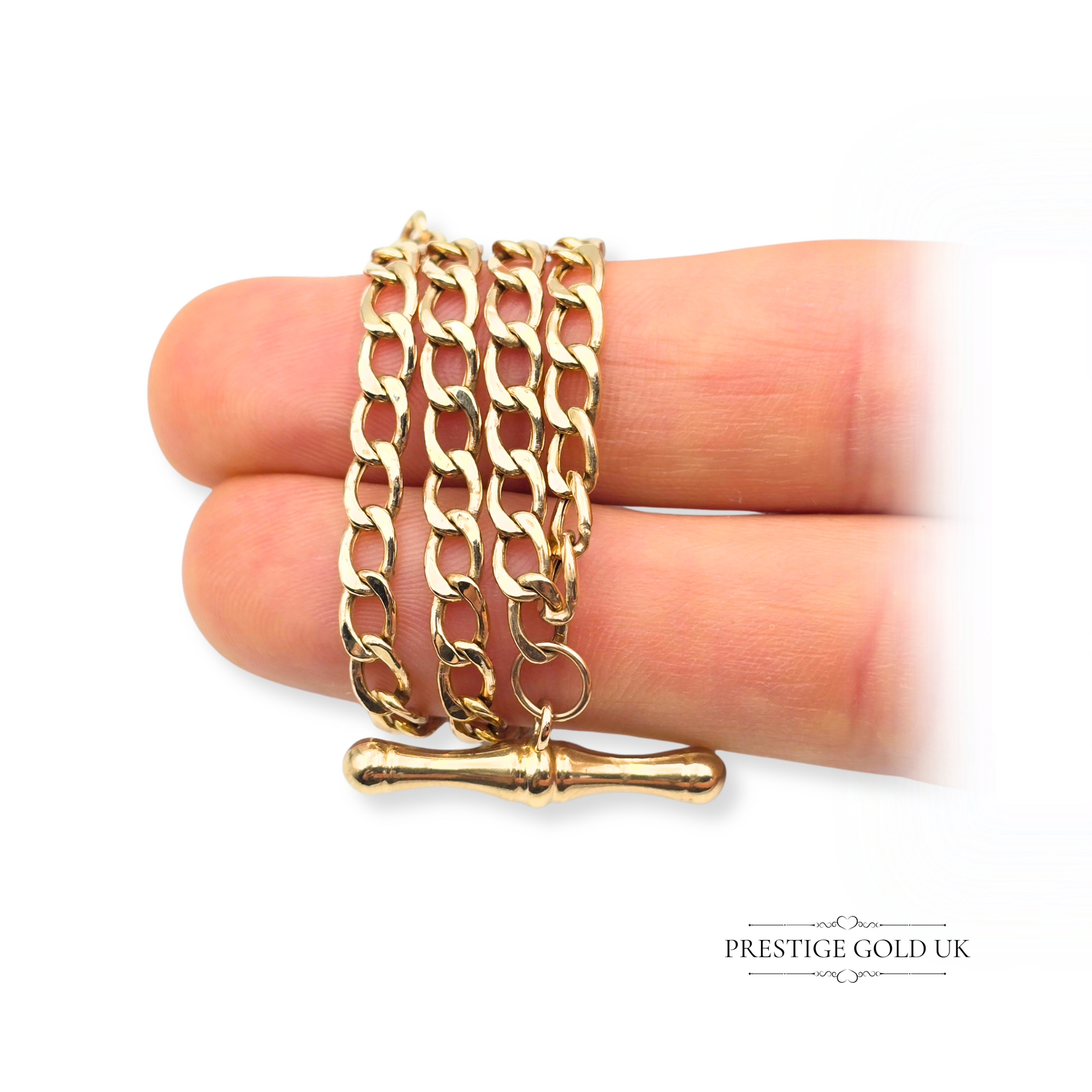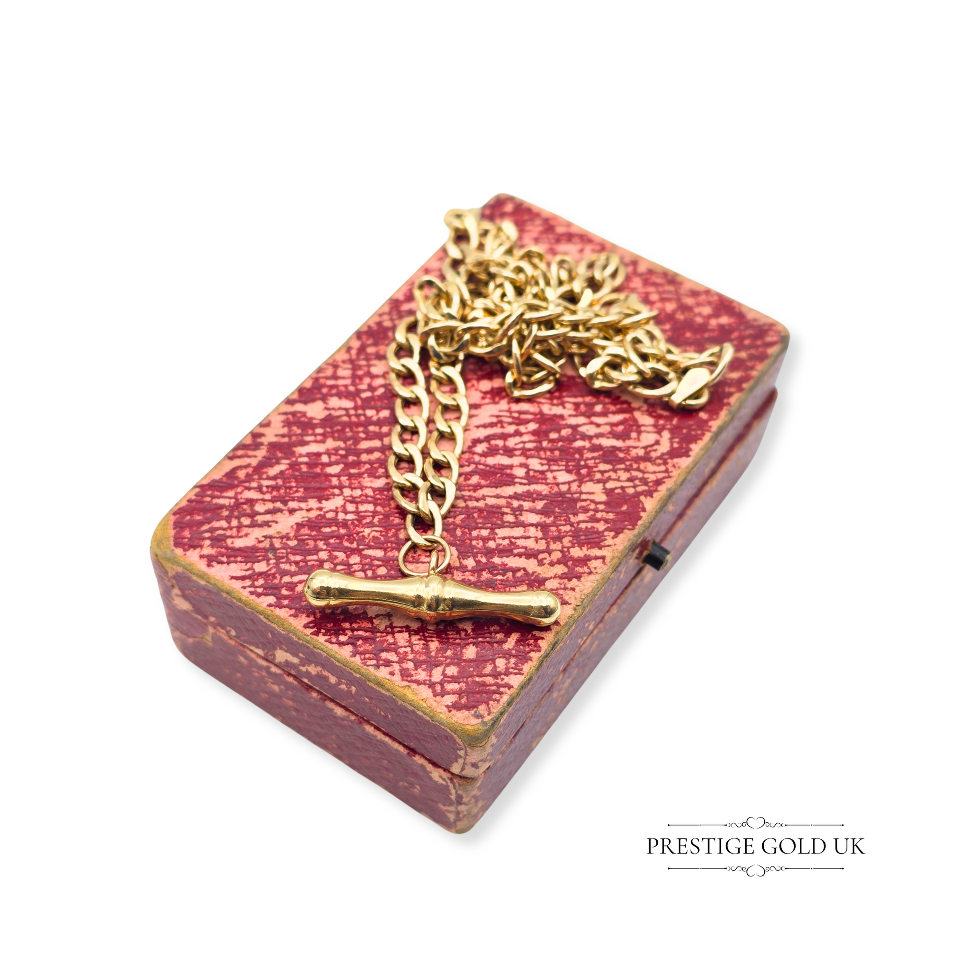 18" 9ct Gold Vintage T-Bar Figaro Necklace, Lightweight Hollow Design