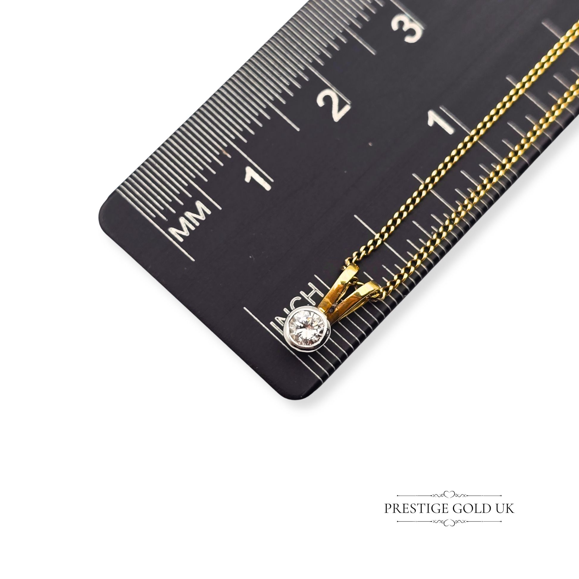 18ct Gold Diamond Pendant 17" Long Curb Chain Necklace, London Hallmark
