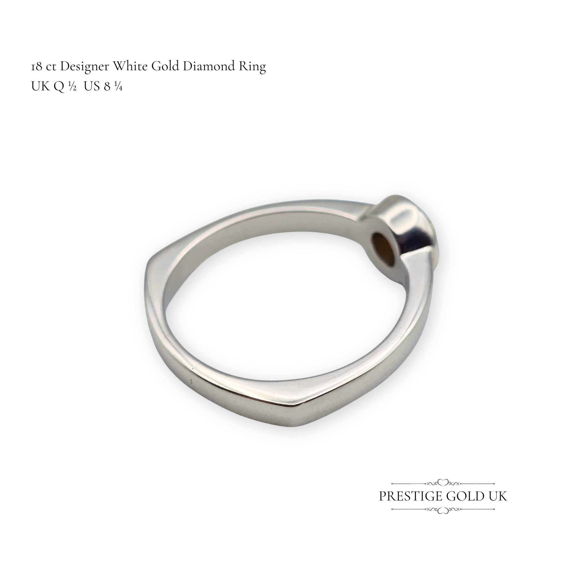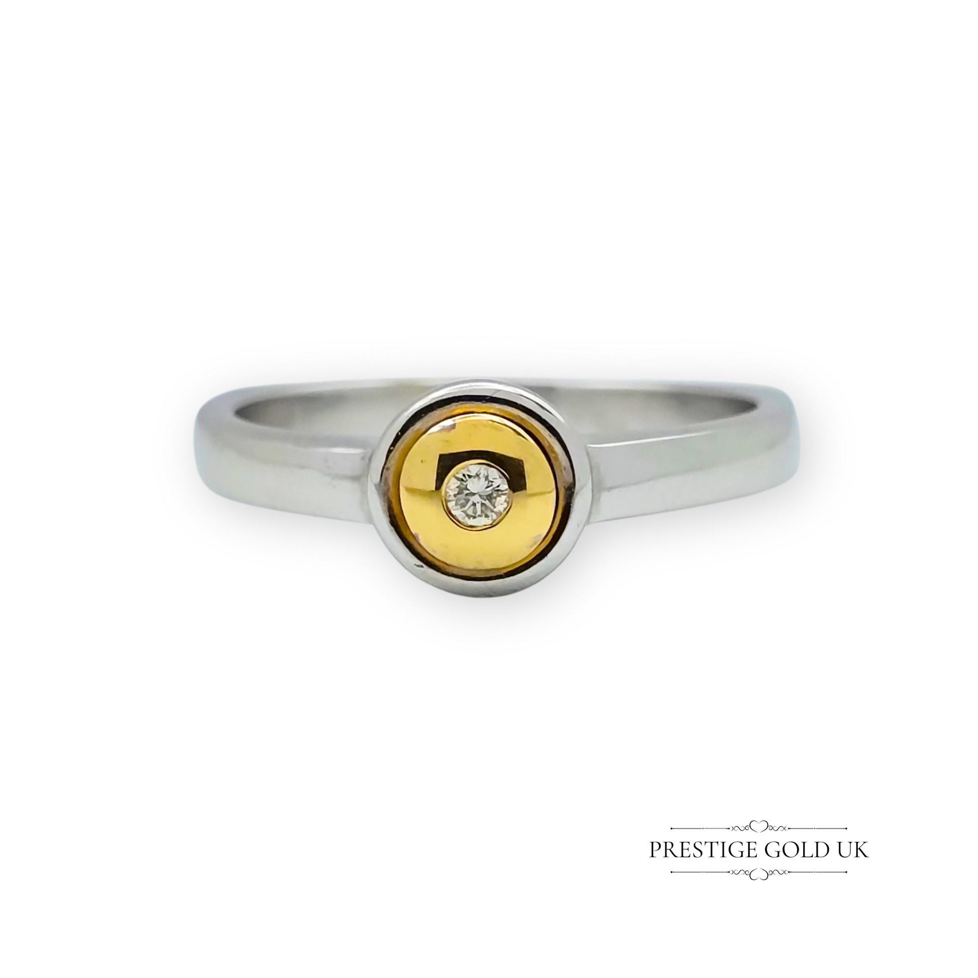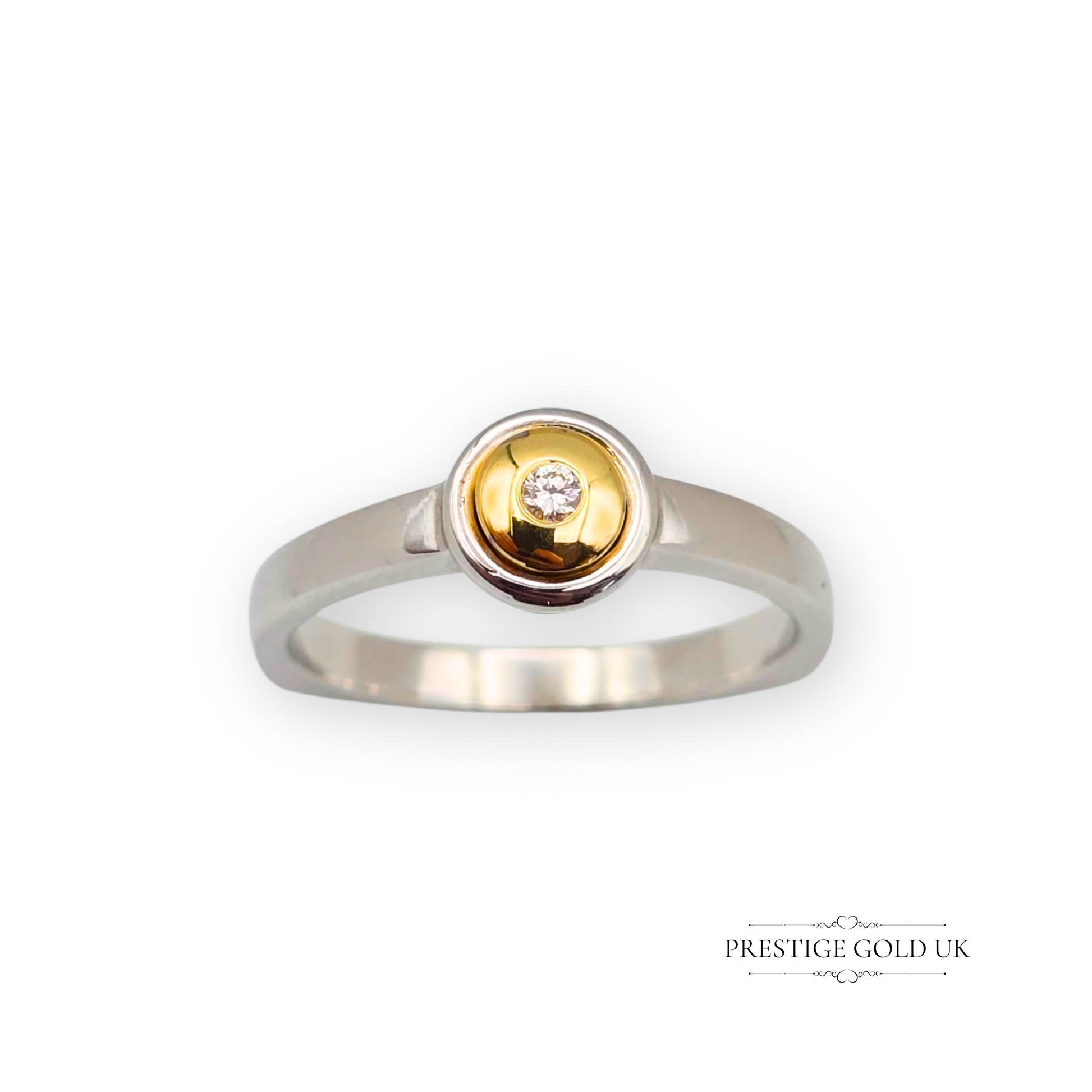 18ct White & Yellow Gold Designer Ring, Solitaire Triangle, UK Q 1/2 US 8 1/4