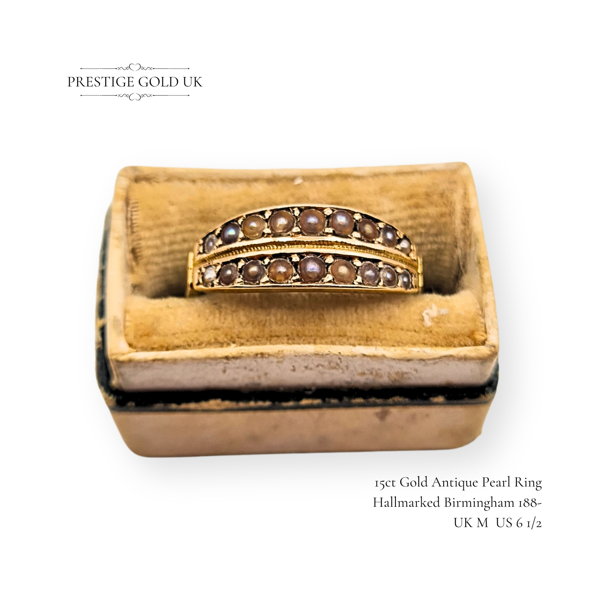 15ct Gold Victorian Pearl Ring, Oetzmann & Co, 1880, UK M / US 6.5
