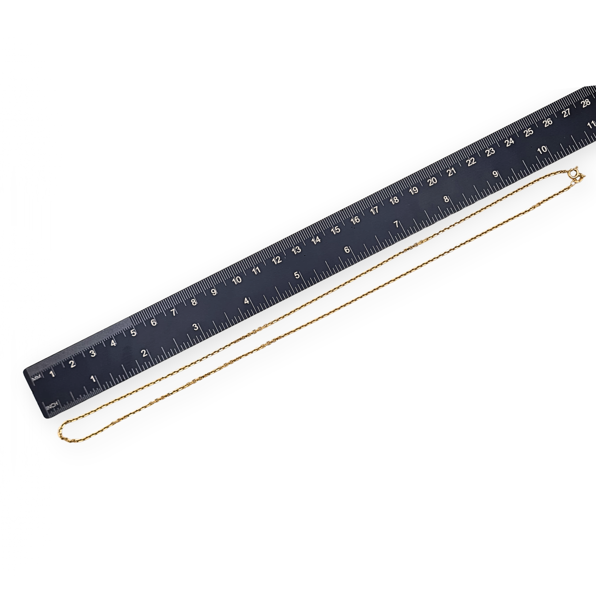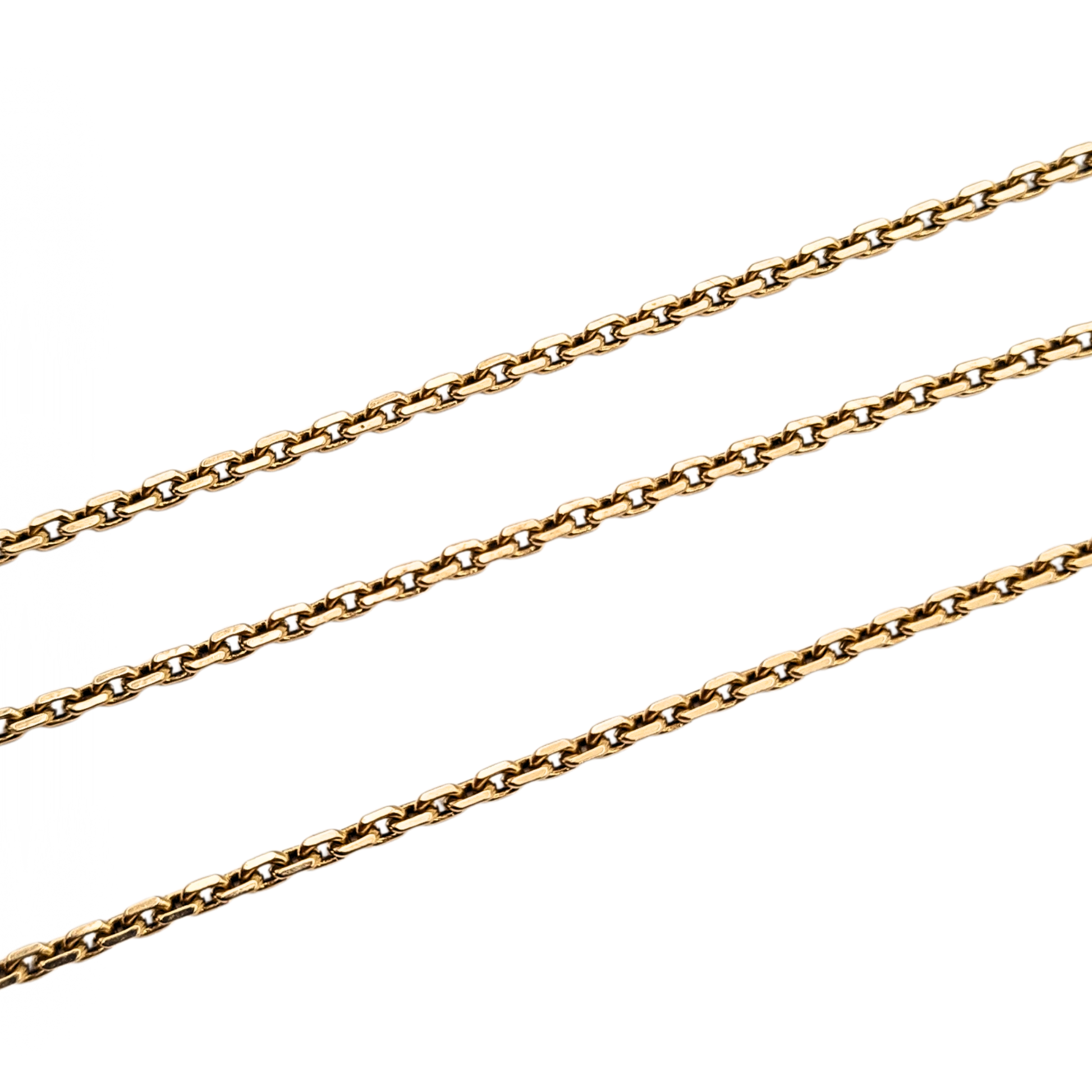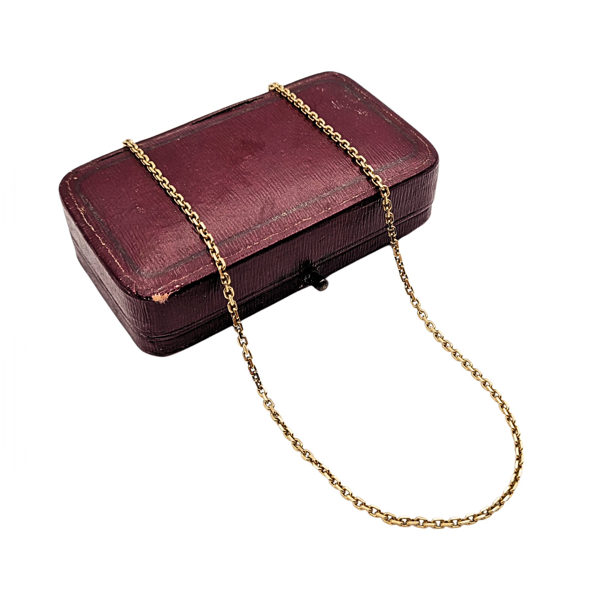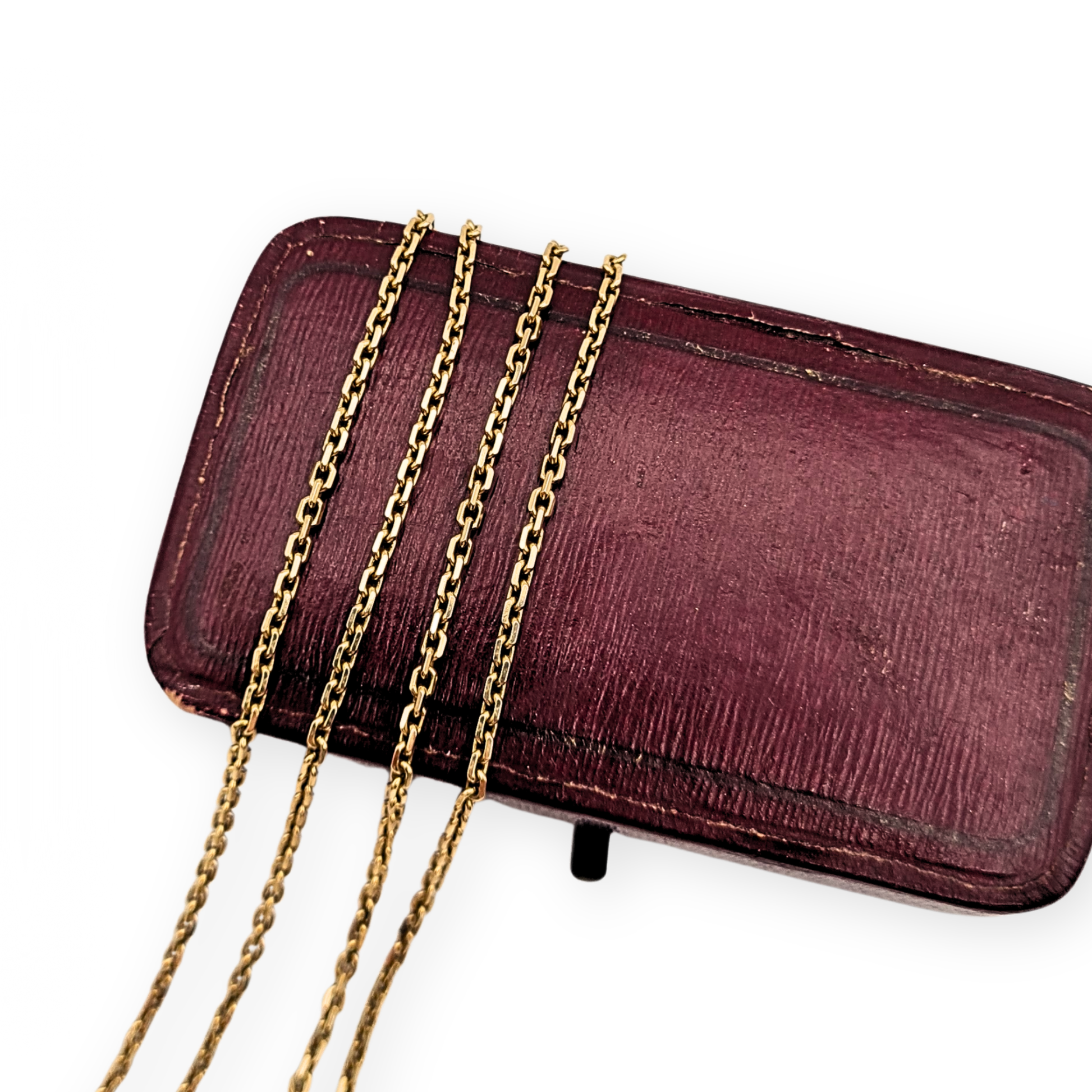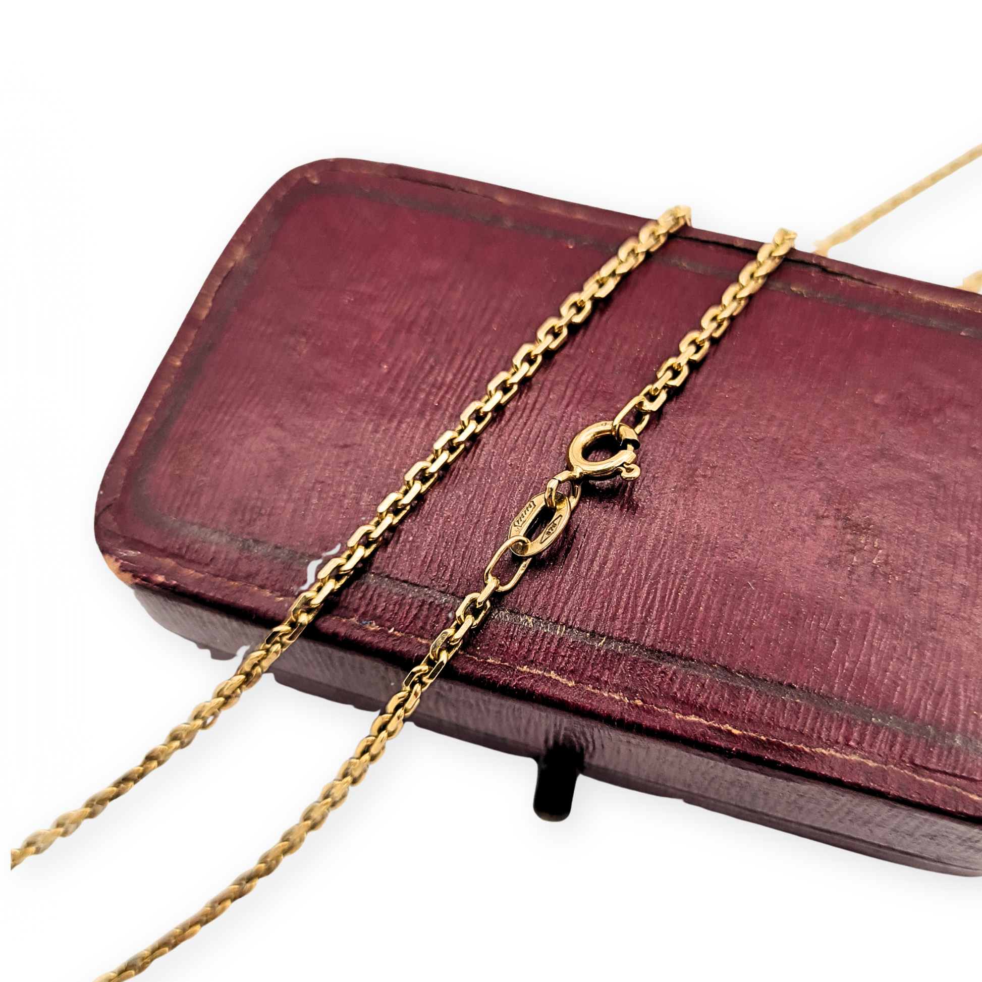 Fully hallmarked and crafted in solid 9ct gold, this 21-inch (54cm) belcher chain features uniform rolo-style links with a subtly squared profile. Weighing 5.6g, it offers a reassuring presence without bulk — elegant on its own or ideal for pairing with pendants. The spring ring clasp is secure and easy to fasten, and the finish gleams with rich, warm yellow gold tones. A fine example of classic British goldwork — versatile, durable, and made to last. Only one available.