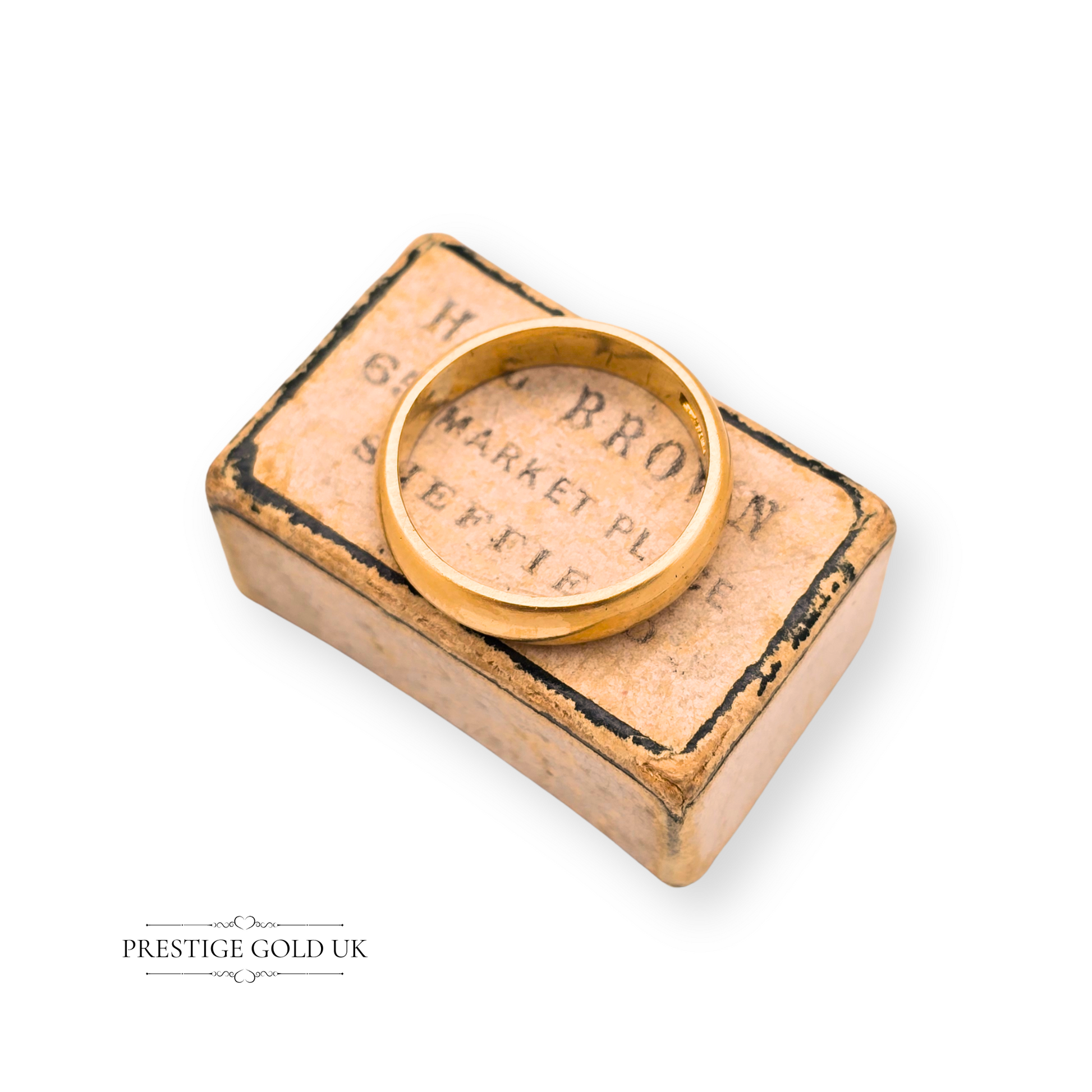 A petite yet bold piece, this vintage 22ct gold band offers rare charm in a small size with a satisfyingly wide 3mm profile. Crafted by B&J and fully hallmarked at the Birmingham Assay Office in 1981, it combines deep golden warmth with substantial form in miniature. Ideal for small fingers, pinky wear, or as a characterful stacking ring, this solid gold piece delivers both weight and elegance in a unique size. A true heirloom-quality treasure with classic styling and rich 1980s craftsmanship. Only one available.