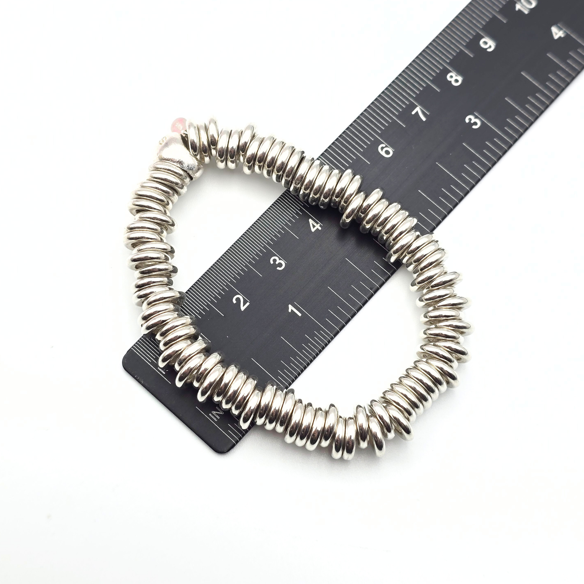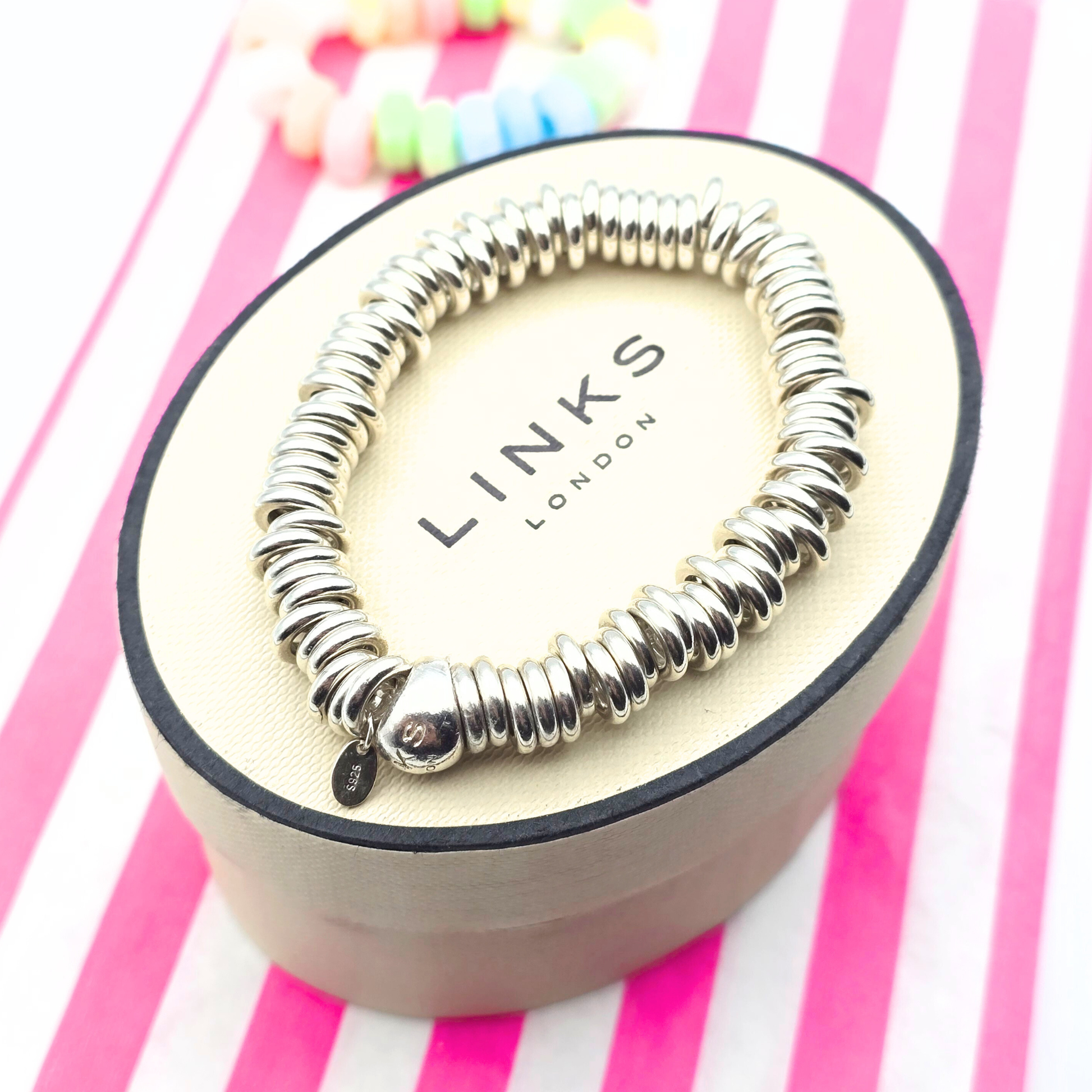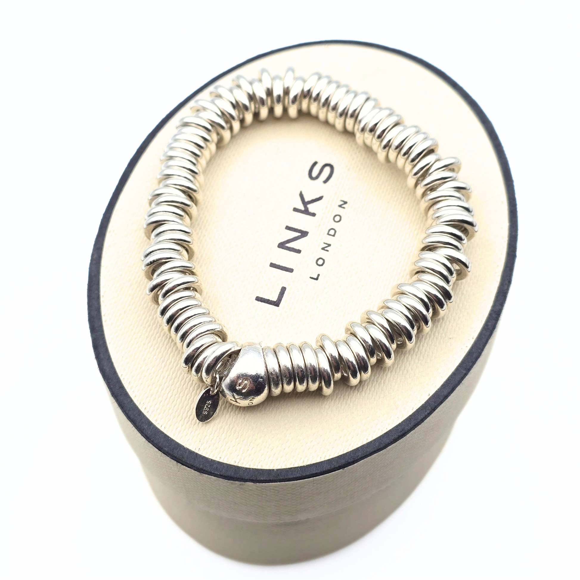 Weighing 48g, this solid silver authentic Links of London Classic Sweetie Bracelet has been professionally refurbished and restrung with new elastic. Inspired by the playful design of elasticated children’s sweet bracelets, it beautifully blends nostalgia with refined British silversmithing.