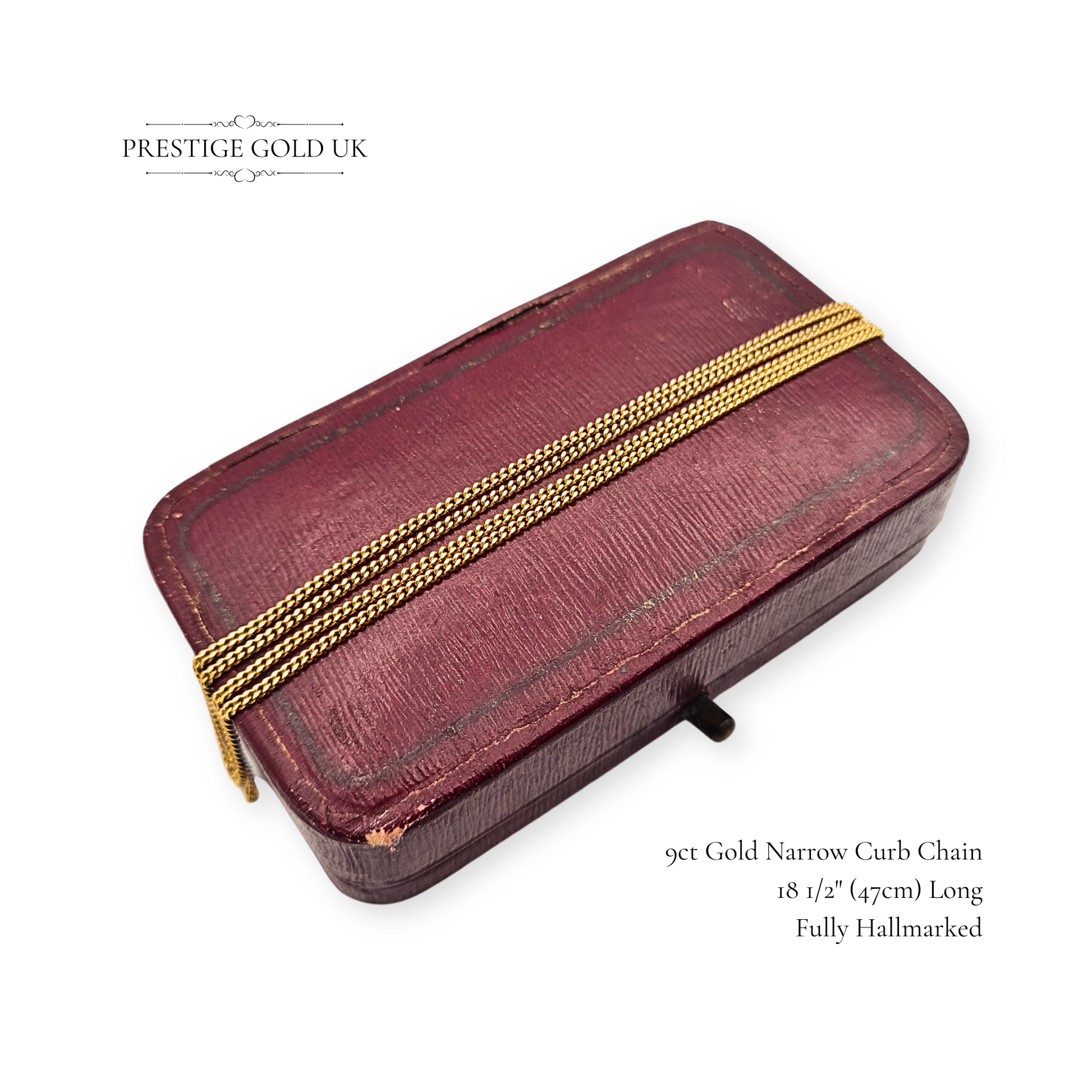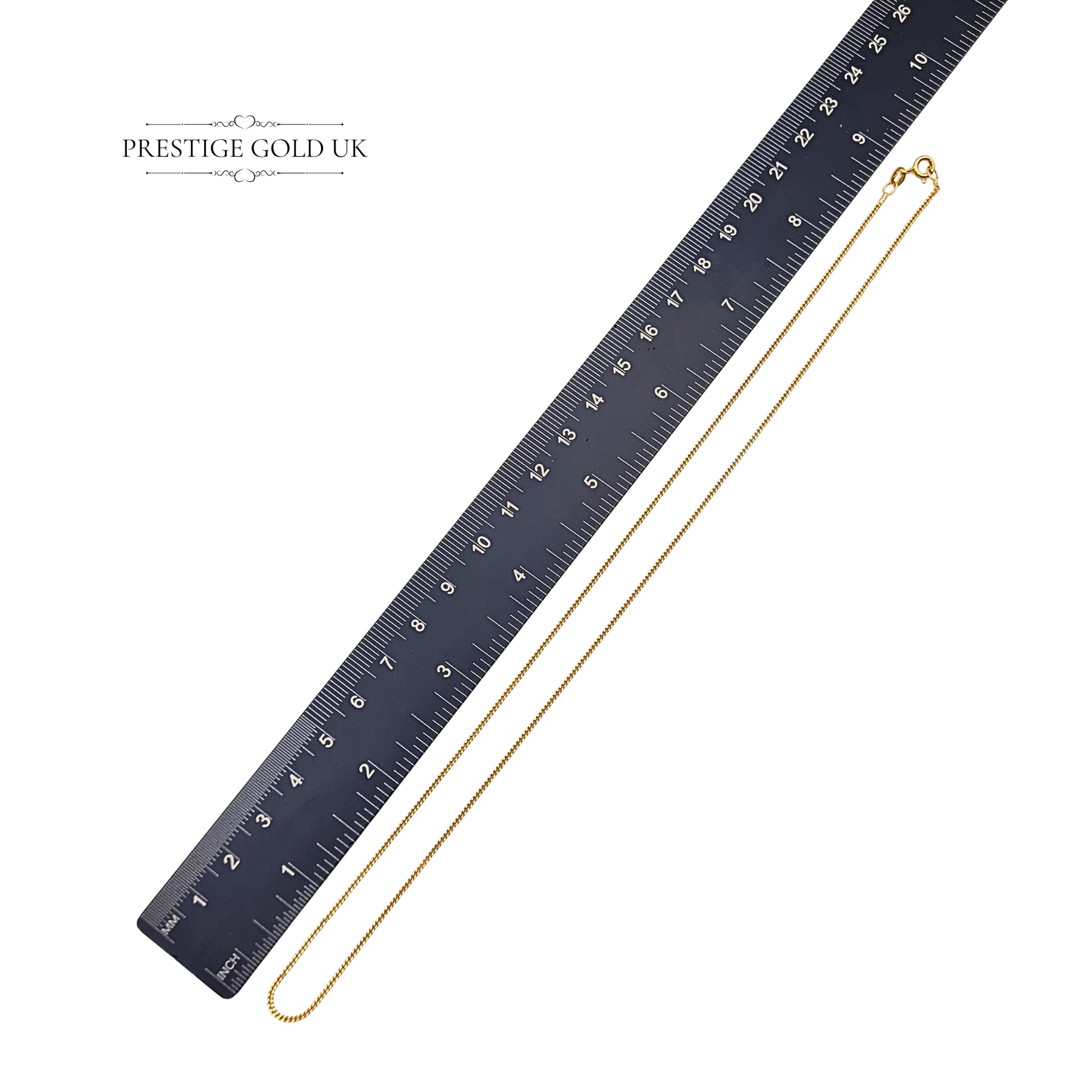 18 1/2" Gold Narrow Curb Chain Necklace, Fully British Hallmarked