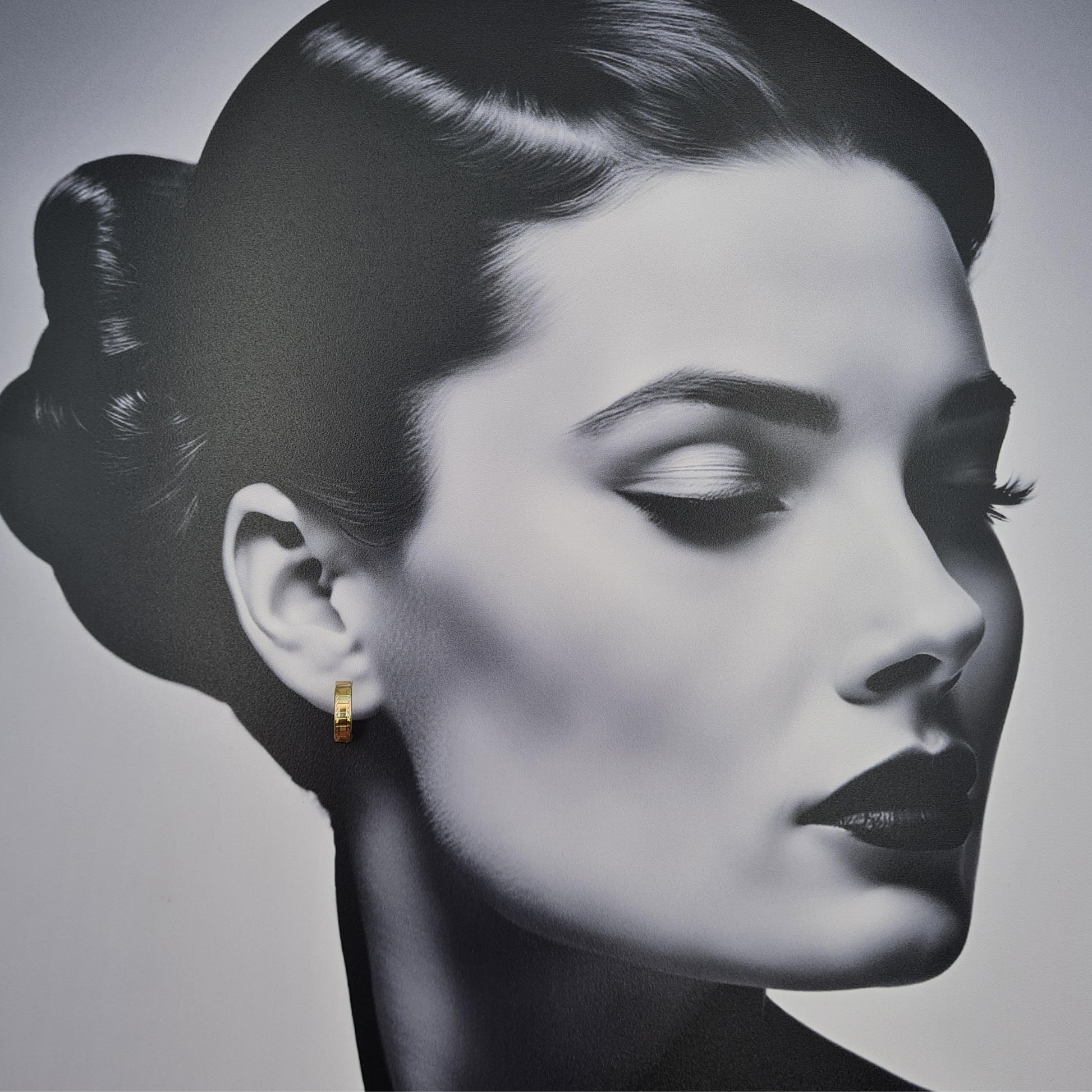 Beautifully detailed, these super lightweight two-colour half hoop earrings feature a geometric engraved pattern combining warm yellow and soft rose tones. Measuring approximately 15mm in diameter and 4mm wide, they offer a flattering, close-to-ear fit that’s easy to wear daily. Their polished finish catches the light subtly, while the intricate surface texture adds a refined, artisan feel. Only one available.